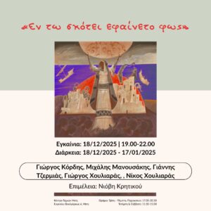 Εγκαίνια: 18 Δεκεμβρίου και ώρα 19.00 – 22.00